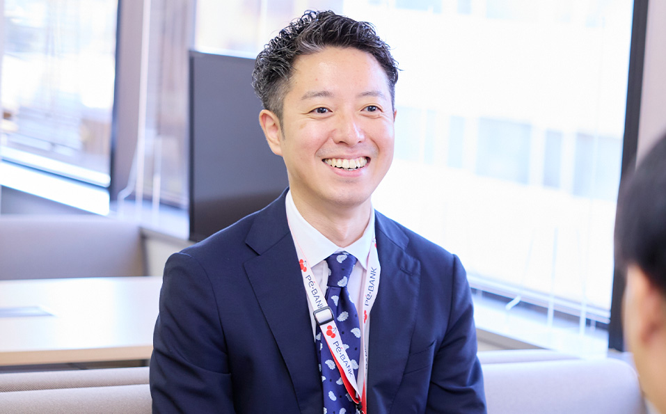 PE-BANKは、今も昔も「人」の魅力に溢れている会社だと思います。常に誰かが誰かを気にかけ、ときに「お節介じゃないか」と思えるほど仲間を想う、そんな社風なんですよね。私自身、その姿勢を大切にしています。若手が悩んでいたら声をかけ、気分転換ができるように寄り添う。少し休む時期があってもいいから、復活したら一緒に頑張ろう!というイメージでしょうか。もちろん、若手から元気をもらう場面も多く、私も助けられています。営業は個人プレーだと思われがちですが、PE-BANKは違います。たとえ一人で仕事をしていても、孤独になることがない、そんな会社なんです。